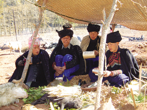 美姑縣的畢摩(左一)和德古(左二) 阿牛史日攝