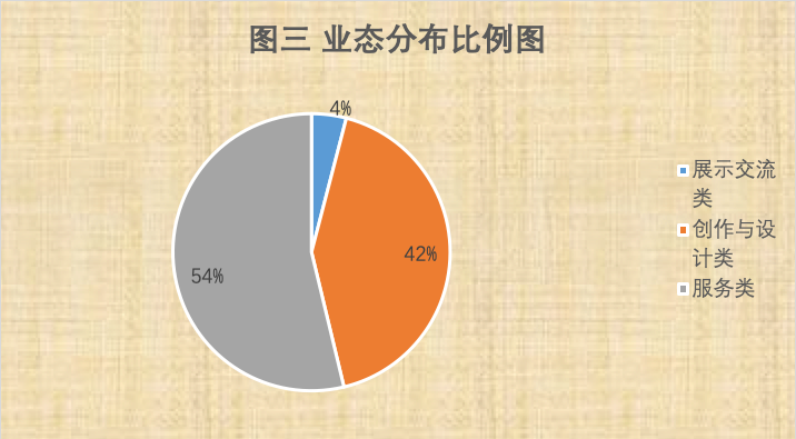由上表可見,四大類可細(xì)分為23個(gè)行業(yè)門類,在招商中圍繞著陶瓷文化及其配套服務(wù),力爭做到全產(chǎn)業(yè)鏈覆蓋。結(jié)合著陶溪川的招商目錄表,筆者對陶溪川的入駐機(jī)構(gòu)和業(yè)態(tài)分布狀況進(jìn)行了調(diào)查與分析,通過數(shù)據(jù)分析來呈現(xiàn)陶溪川的業(yè)態(tài)布局。